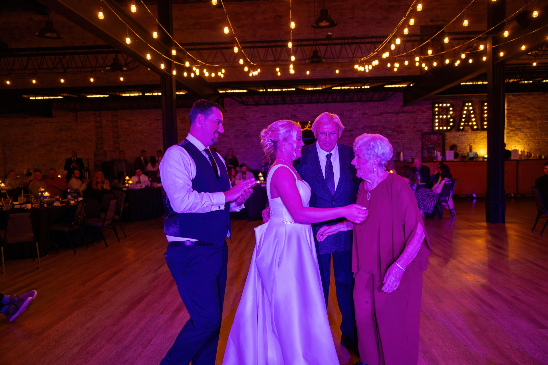 music, our light show, and a meeting with the future bride and groom.