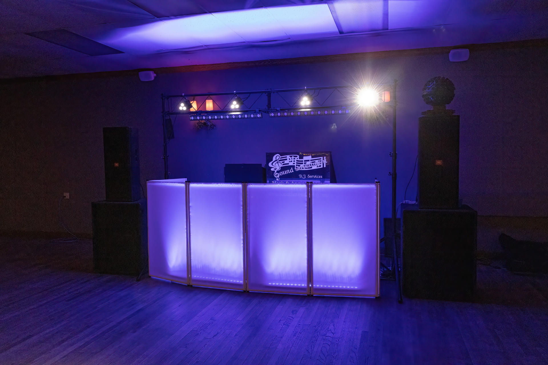 Our private party package includes 4 hours of continuous music and our light show. A date can be secured with $200 down. The $200 is completely refundable if you should change your mind for any reason up until 120 days before the event. |